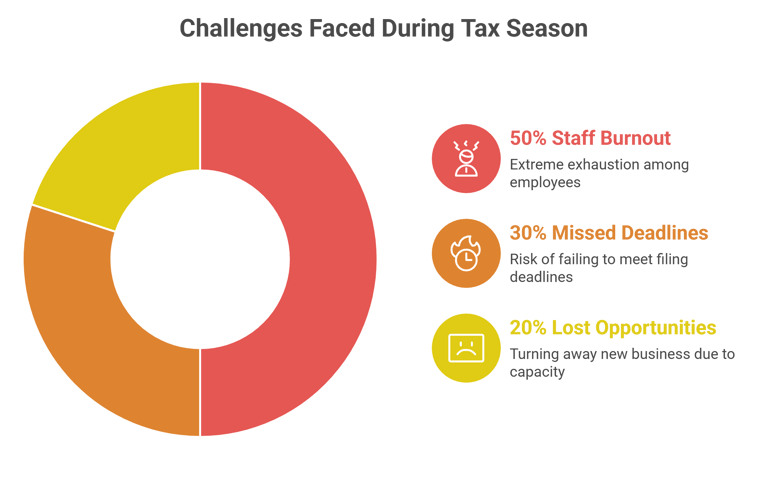 For a fast-growing regional accounting firm, the U.S. tax season was a double-edged sword. While it was their most profitable period, the 200% surge in workload pushed their highly skilled core team to the breaking point. Every year, they faced the same critical challenges: extreme staff burnout, the looming risk of missing critical filing deadlines, and the frustrating necessity of turning away new, lucrative business opportunities simply due to a lack of capacity. The firm's growth was being throttled by its own success, creating a cycle of stress and missed potential.